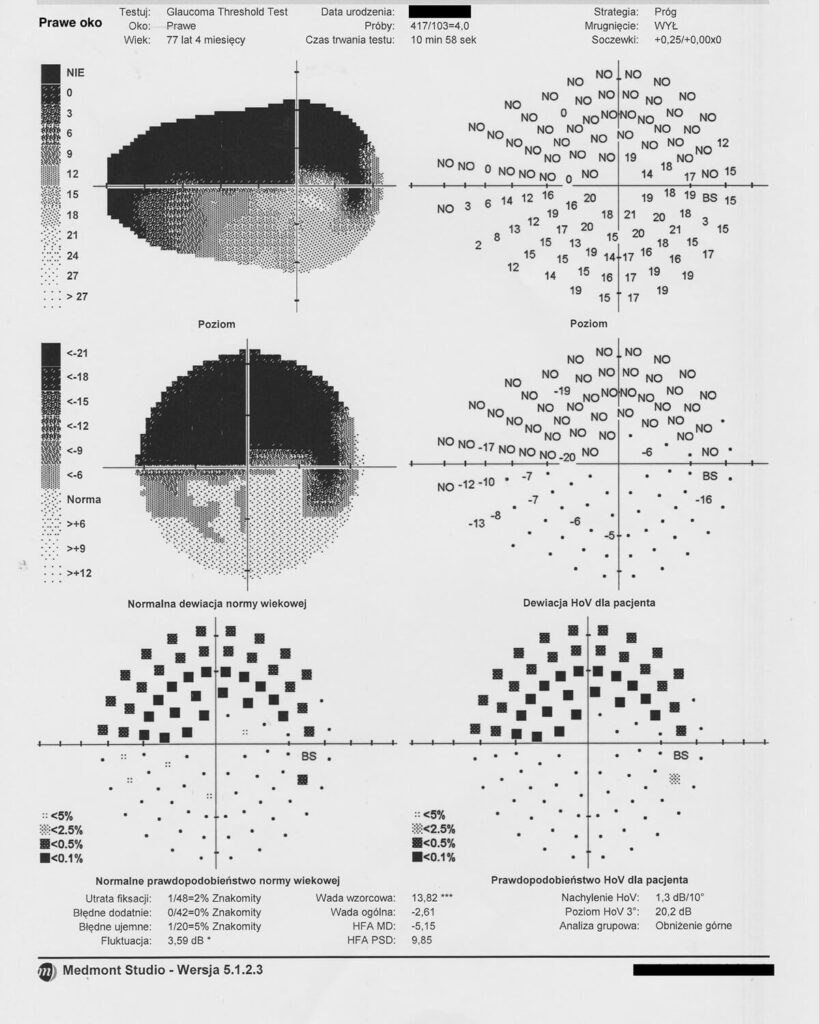 Umożliwia ocenę funkcji nerwu wzrokowego i wykrycie ubytków w polu widzenia.